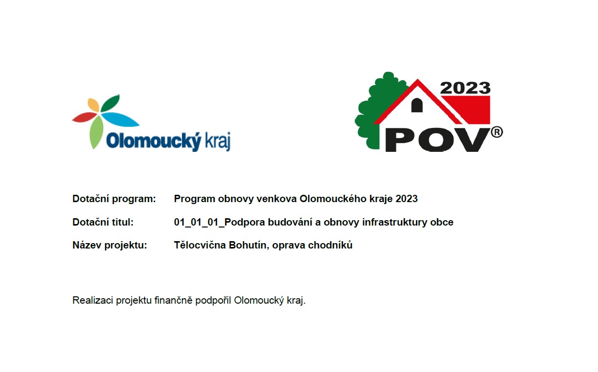 Naše obec získala v tomoto roce 2023 Dotaci od Olomouckého kraje z POV2023 na projekt "Tělocvična Bohutín, oprava chodníků.